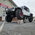 15" tall Display Stand. Comes with HD drive-up ramp. No tool set up or take down and it stores flat for convenience. Maximum capacity: one tire, from one axle, beneath one 4x4 equipped vehicle. Iron Rock Off Road is not responsible for your vehicle tipping over due to lack of suspension travel. If you need more travel to use your display stand as it was intended, please refer to our suspension category where you can find a huge selection of products that will enable you to pose with magnificence upon the pedestal. Kit contains (1) stand and (1) ramp. Stand top and ramp come powdercoated. Stand sides come bare high strength aluminum.